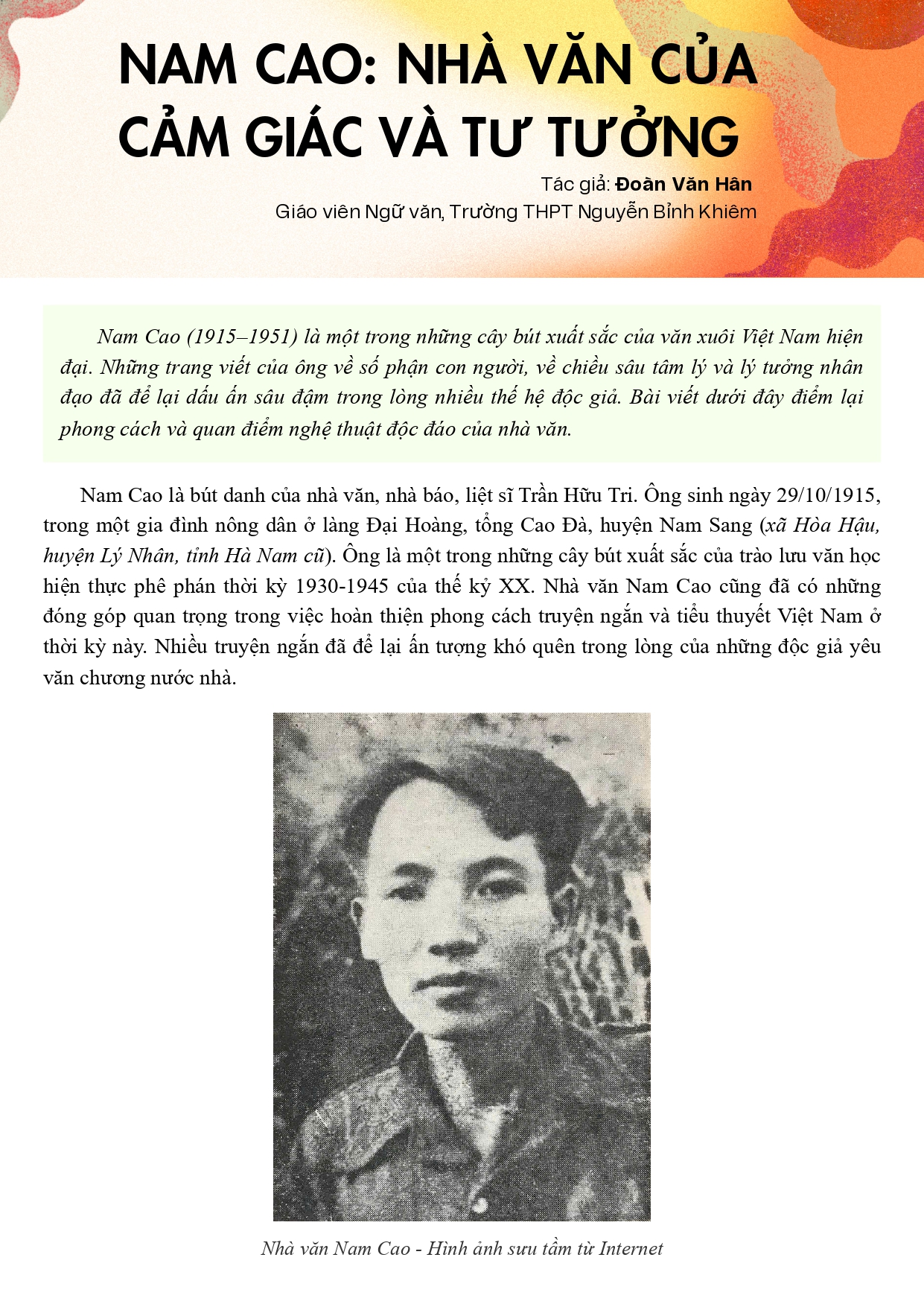 NAM CAO: NHÀ VĂN CỦA CỦA CẢM GIÁC VÀ TƯ TƯỞNG